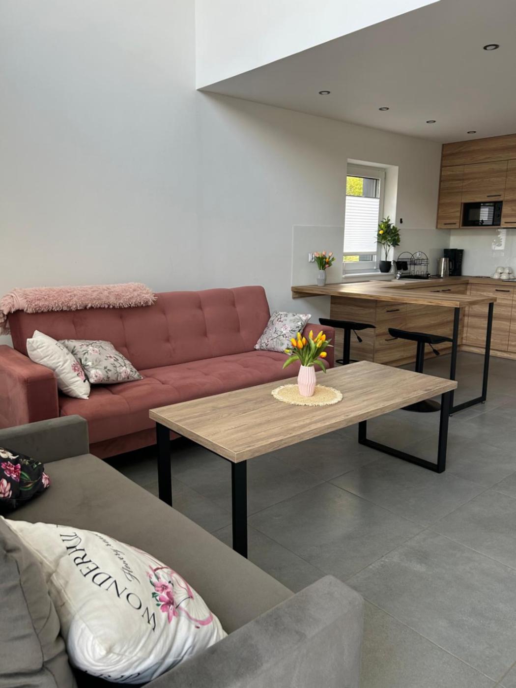 Dom z 2 sypialniami. The private pool is the standout feature of this holiday home. This air-conditioned holiday home comes with 1 living room, 2 separate bedrooms and 1 bathroom with a shower. Guests can make meals in the fully equipped kitchen that has a refrigerator, kitchenware and a microwave. Boasting a terrace with garden views, this holiday home also features a coffee machine and a flat-screen TV. The unit has 3 beds. Dom wakacyjny - 6 osobowy. Powierzchnia pokoju ok.: 70 mkw.